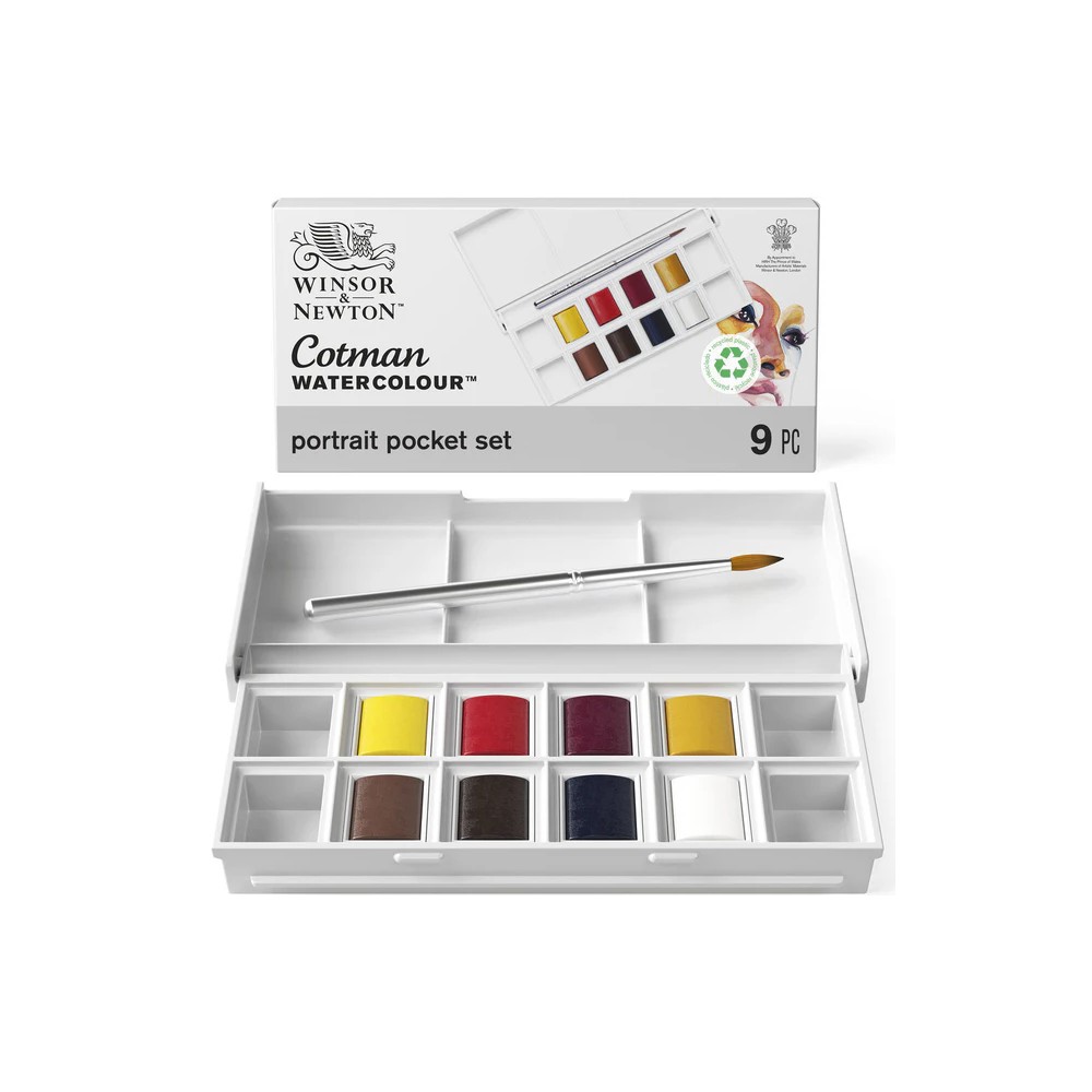 Pinta retratos con 8 acuarelas Cotman cuidadosamente seleccionadas por artistas profesionales. Elaboradas con pigmentos de alta calidad para bellas artes en un estuche de bolsillo. Incluye un pincel de viaje y espacio para 4 colores más.