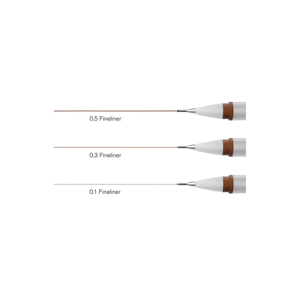 3 rotuladores de punta fina sepia: puntas de 0,1, 0,3 y 0,5 mm